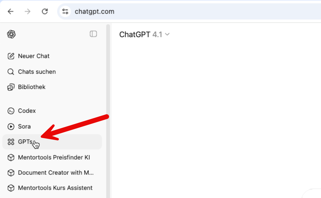 Du kannst deinen GPT nun auf der linken Seite in ChatGPT jederzeit öffnen und nutzen: