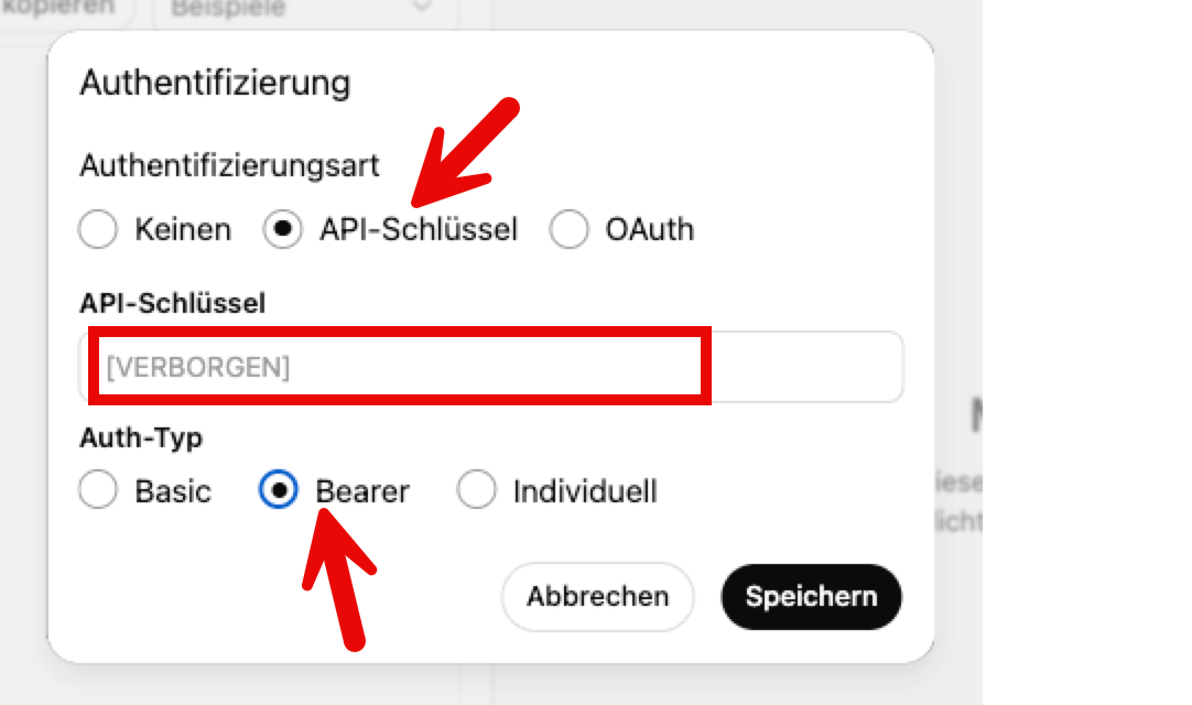 Füge den Schlüssel dann in ChatGPT ein und speichere.